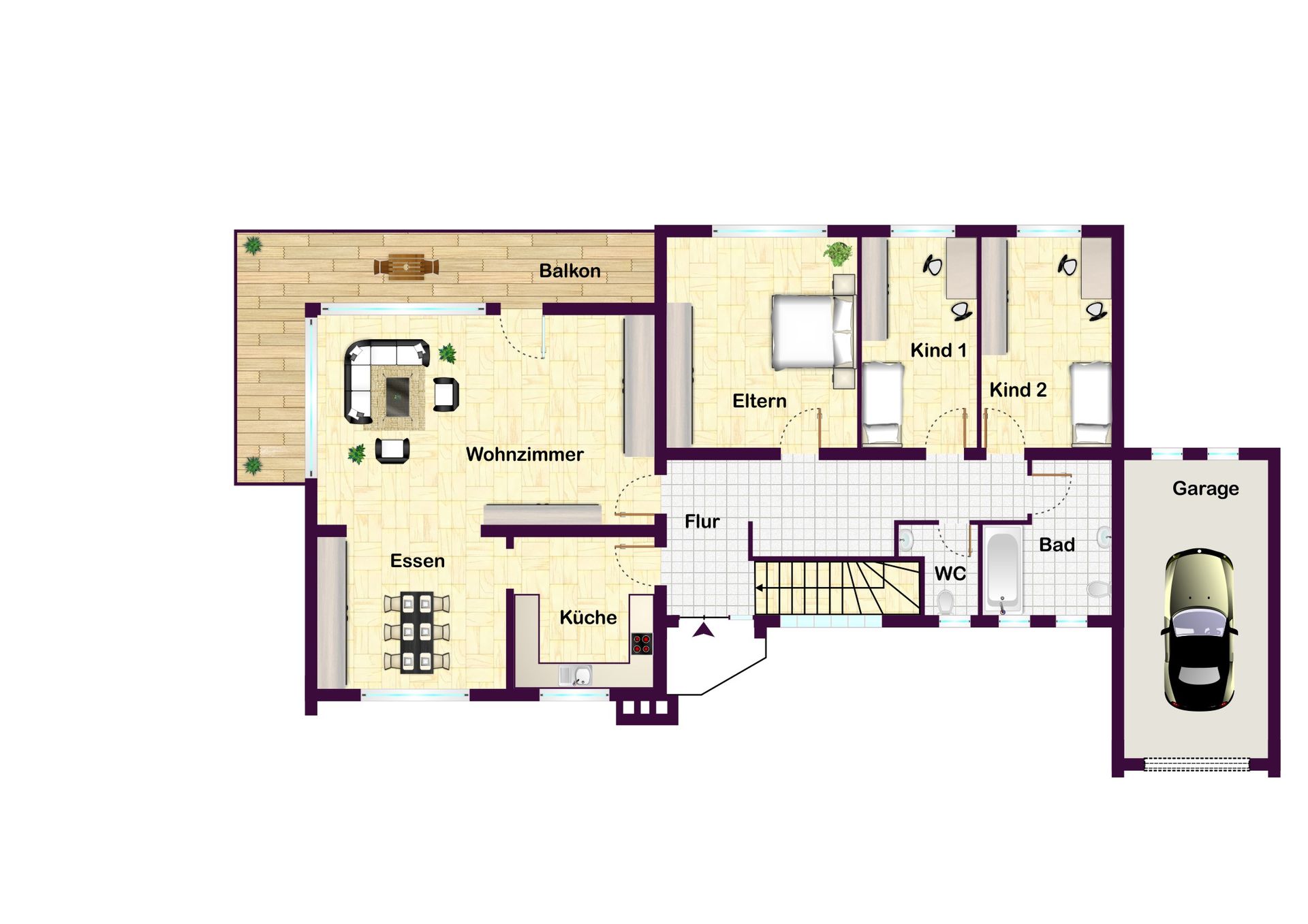 - Wohnfläche ca. 176 m², im EG großzügiger, heller Wohn-/Essbereich mit Balkon, Küche, Flur, Elternschlafzimmer, 2 Kinderzimmer, Tageslicht-Bad, Gäste-WC, im UG Einliegerbereich bestehend aus Wohnzimmer, Küche mit Zugang zur Terrasse und in den Garten, Schlafzimmer, Tageslicht-Bad