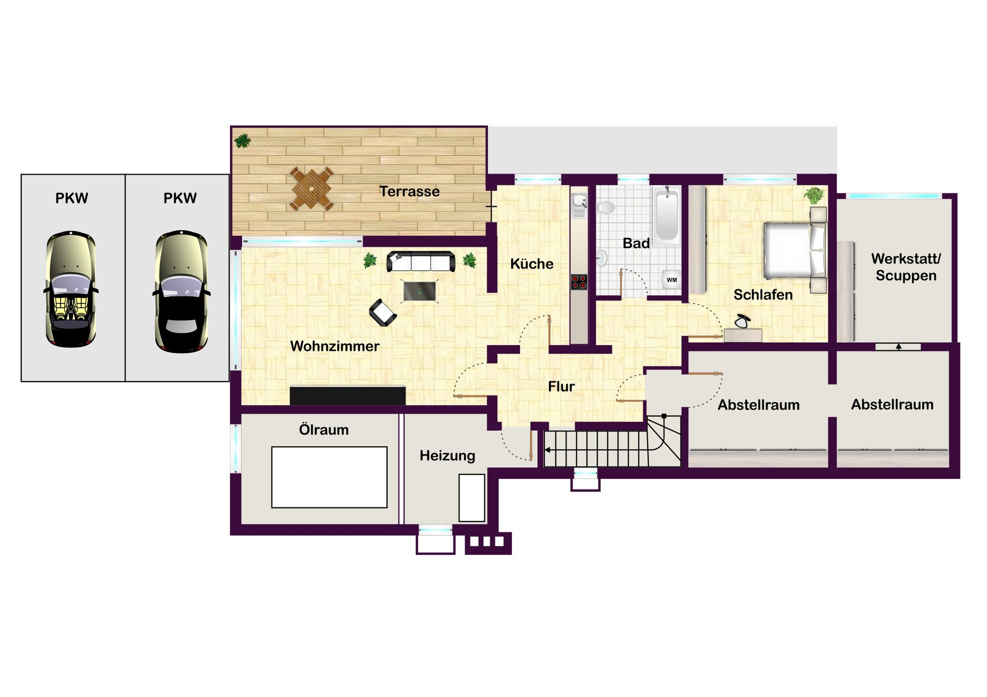 - Freistehendes Einfamilienhaus mit praktischem Grundriss, Einliegerwohnungsbereich im Untergeschoss, Garage und mehrere Stellplätze, ruhige Lage in ländlichem Umfeld, gute Verkehrsanbindungen