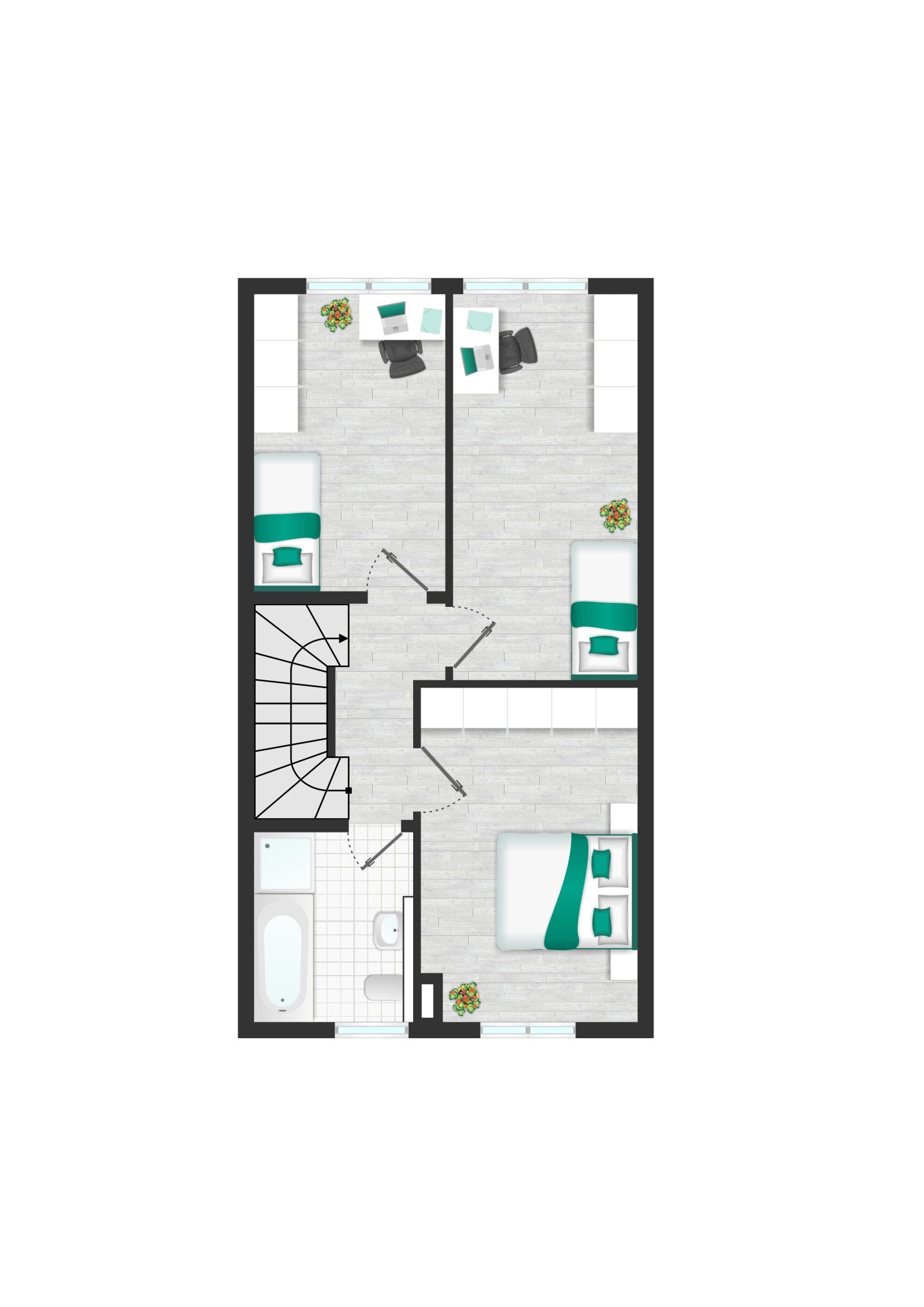 - Wohnfläche ca. 137 m², im EG großzügiger, heller Wohn-/Essbereich mit Ofen und Zugang zur Terrasse, Küche, Flur, Tageslicht Gäste-WC, Garderobe, im OG Elternschlafzimmer, zwei Kinderzimmer, Tageslicht-Bad, Studio im DG, Gastherme